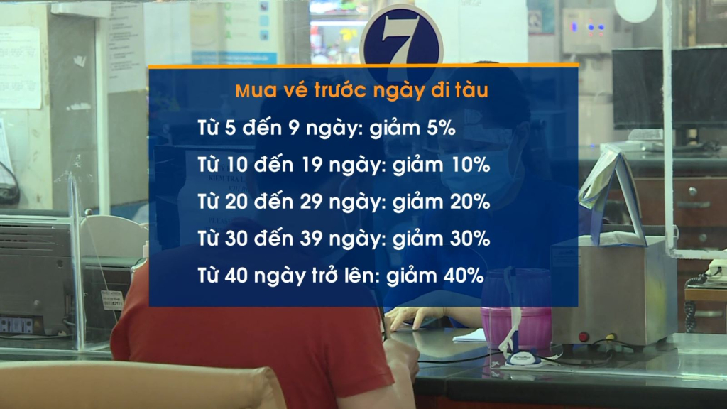 Cụ thể những hành khách mua vé trước ngày đi tàu từ 5 đến 9 ngày được giảm 5%; Từ 10 đến 19 ngày được giảm 10%; Từ 20 đến 29 ngày được giảm 20%; Từ 30 đến 39 ngày được giảm 30% và từ 40 ngày trở lên được giảm 40%. Hành khách khi đổi trả vé sẽ chịu mức phí tương đương mức giảm giá, nhưng vé giảm 5 đến 10% phí đổi, trả theo quy định hiện hành. Riêng với vé giảm giá từ 20% trở lên phải đổi, trả trước giờ tàu chạy 72 giờ.