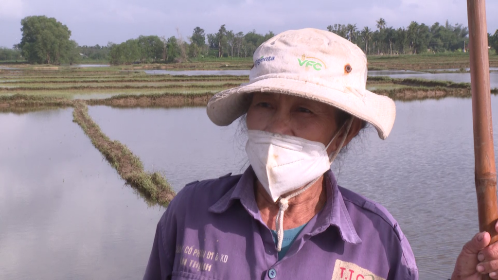 Bà Võ Thị Mai, Xã Hành Minh, huyện Nghĩa Hành, Quảng Ngãi nói: Tui có 7, 8 sào ruộng bị ngập. Vụ này, phân bón lên giá, mình cũng cố gắng làm. Nhưng rồi lúa bị ngập hư hết.
