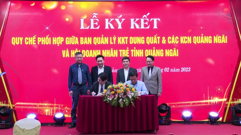 Dịp này, Ban Quản lý Khu Kinh tế Dung Quất và các KCN Quảng Ngãi và Hội Doanh nhân trẻ tỉnh kí kết quy chế phối hợp nhằm hỗ trợ doanh nghiệp sản xuất, kinh doanh ổn định và phát triển.