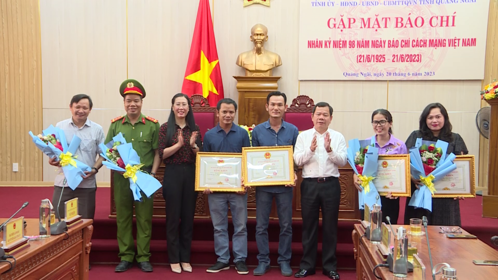Tại buổi gặp mặt, Bí thư Tỉnh ủy Bùi Thị Quỳnh Vân và Chủ tịch UBND tỉnh Đặng Văn Minh đã tặng Bằng khen và tặng hoa chúc mừng 04 nhóm tác giả của Đài Phát thanh và Truyền hình tỉnh Quảng Ngãi đã đạt giải thưởng tại Liên hoan Truyền hình toàn quốc lần thứ 41. Trong đó có 02 giải Vàng và 02 giải Khuyến khích./.