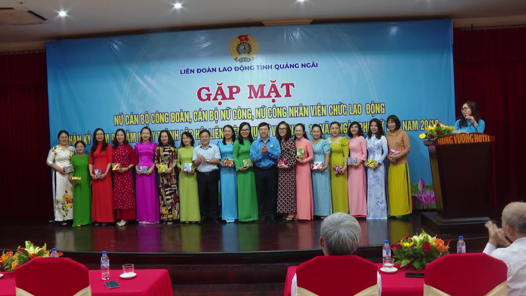 Liên đoàn Lao động tỉnh Quảng Ngãi gặp mặt nữ cán bộ công đoàn, nữ công và nữ công nhân, viên chức, lao động tiêu biểu, nữ công nhân, viên chức, lao động có hoàn cảnh khó khăn, nhân kỷ niệm 93 năm Ngày thành lập Hội Liên hiệp phụ nữ Việt Nam.
