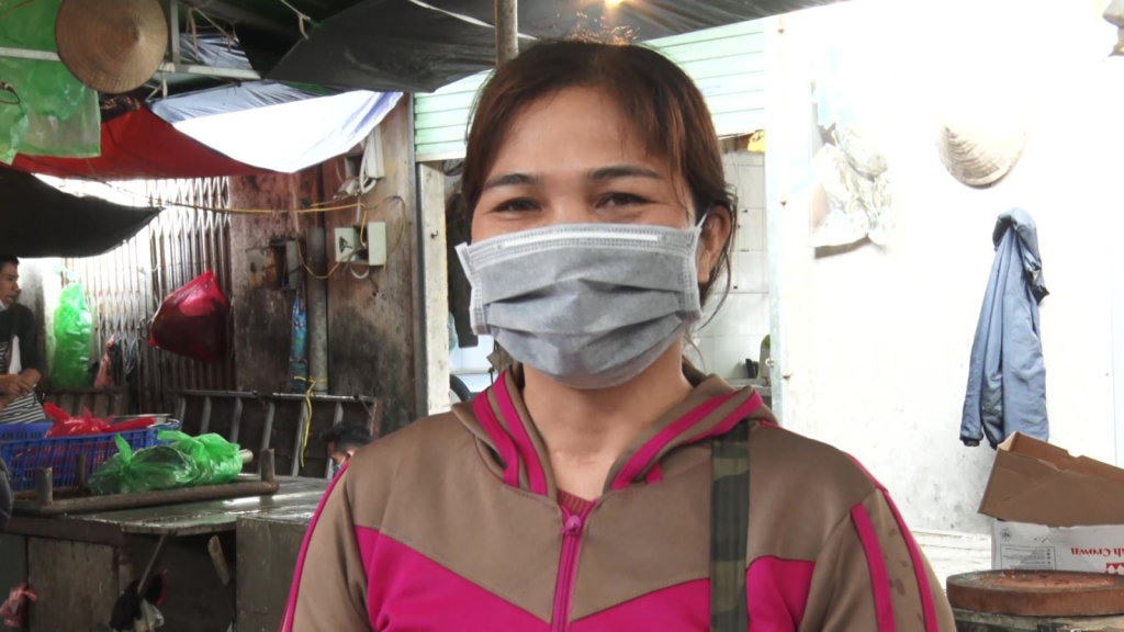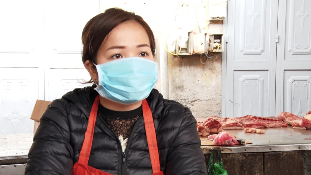 Chị Nguyễn Thị Hiền, Tiểu thương, Chợ Phía Nam, Hà Nội, nói: ”Thời điểm không dịch chúng tôi có thể làm 7-8 con lợn nhưng dịch chúng tôi làm hai con”.