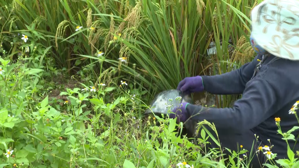 Sau khi nước trong ruộng bị ngập sâu được tháo ra ngoài mương tiêu, bà con nông dân lo dựng cây lúa dậy. Việc làm này tốn nhiều công sức, nhưng lúa chưa đến kỳ thu hoạch, bị ngã đổ thì chẳng còn cách nào hơn.