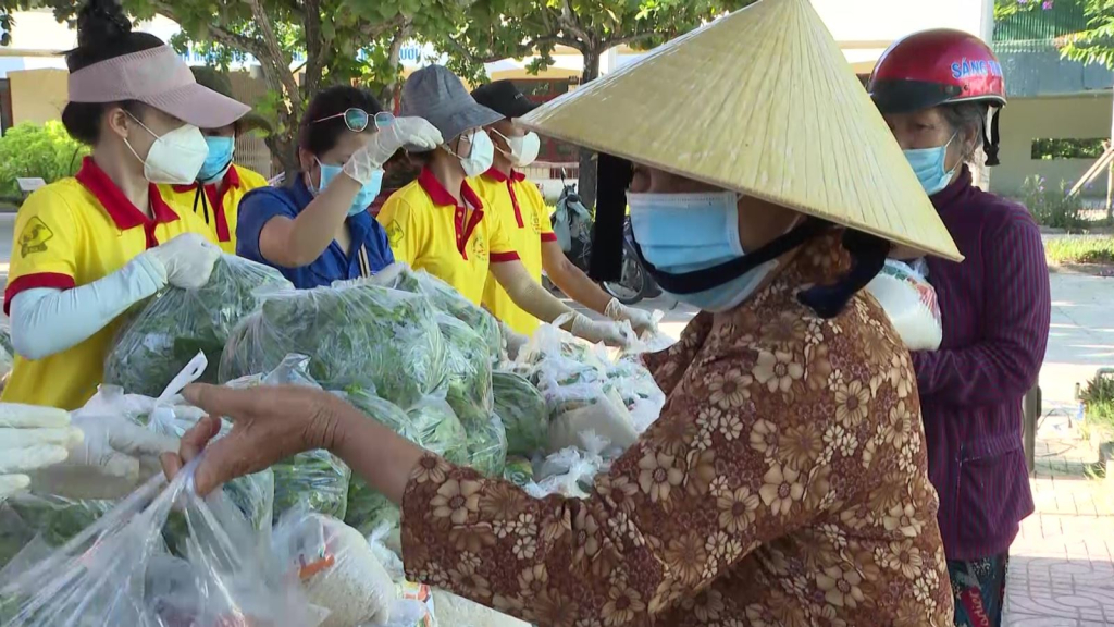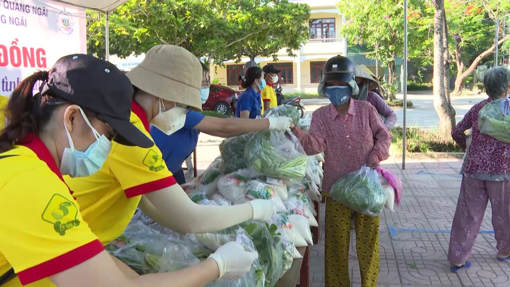 “Gian hàng 0 đồng” được tổ chức tại Phường Trương Quang Trọng, thành phố Quảng Ngãi. Mặt trận và các đoàn thể của thành phố đã huy động các nguồn lực để chia sẻ với bà con nghèo. Đo thân nhiệt, sát khuẩn, đeo khẩu trang, mọi người nhận quà đều tuân thủ nguyên tắc phòng dịch.