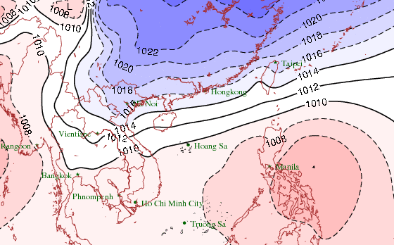 Hiện nay (19/10), không khí lạnh đã gây ra gió Đông Bắc mạnh cấp 6-7, giật cấp 9trên khu vực Vịnh Bắc Bộ và Bắc Biển Đông; ở các tỉnh Bắc Bộ có mưa và mưa nhỏ rải rác.