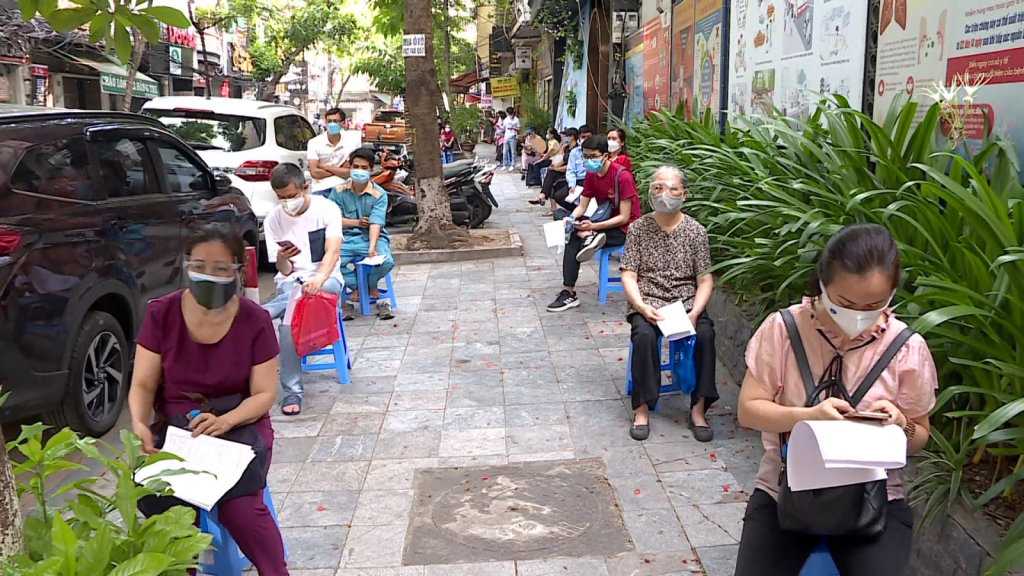 Để đảm bảo phòng dịch, tránh nguy cơ lây nhiễm khi tiêm chủng, 7 điểm tiêm trên địa bàn quận Hoàn Kiếm đã phân bổ đối tượng theo giờ, đảm bảo đường đi một chiều tại điểm tiêm. Có đánh dấu vị trí đứng, ngồi, hạn chế việc tiếp xúc của từng người khi đến điểm tiêm, đặc biệt là luôn có cán bộ nhắc nhở.