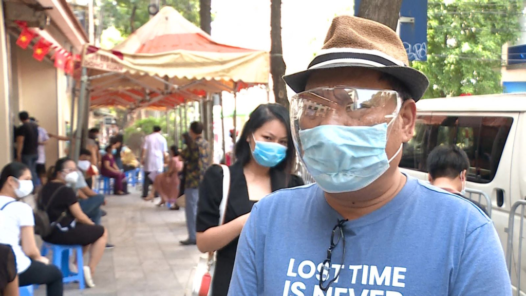 Ông Nguyễn Anh Tuấn, Quận Đống Đa, Hà Nội nói: Đảm bảo như thế này rất tốt, Mặc dù đã được phân chia giờ theo từng đơn vị một, ví dụ đơn vị của tôi là 9h thì chúng tôi đúng 9h mới dám đến.