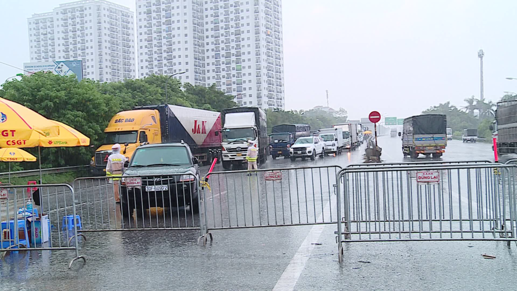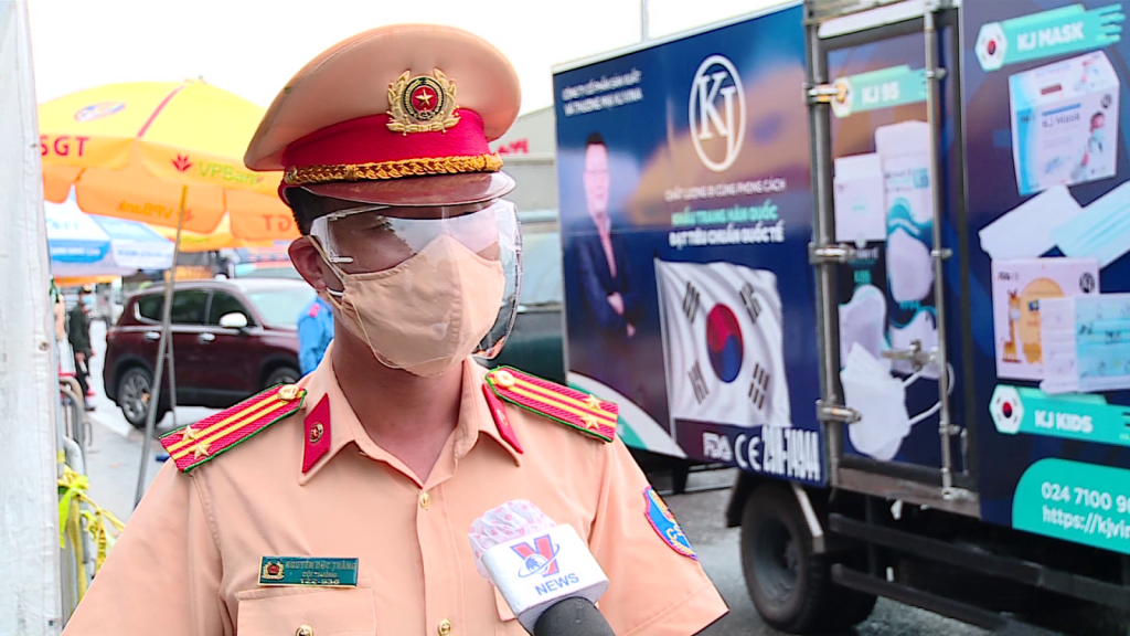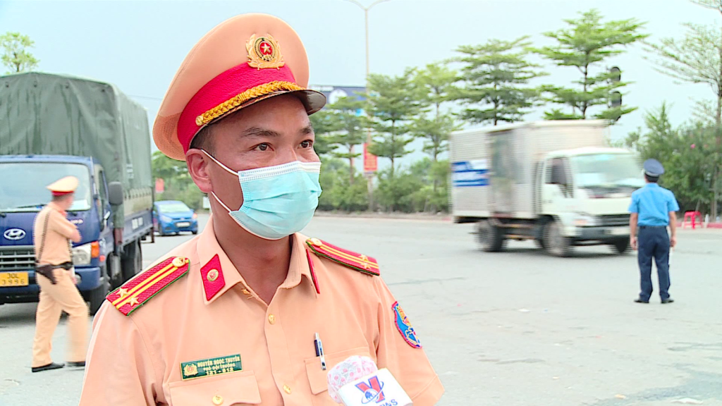 Trung tá Nguyễn Đức Thắng, Đội trưởng Đội CSGT số 7, Công an Hà Nội cho biết: Phương tiện đi qua các chốt tại vị trí này đã được thông suốt. Thứ 2 là các phương tiện chở hàng thiết yếu có đủ điều kiện về an toàn theo khuyến cáo của Bộ y tế từ lái xe đến hàng hóa trên xe chúng tôi tạo điều kiện cho lưu thông qua chốt nhanh nhất.