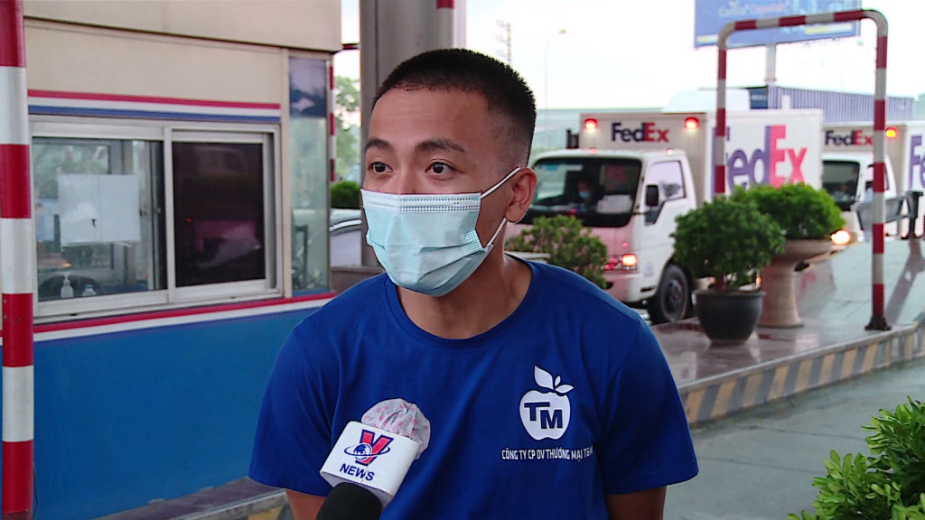 Lái xe Trần Văn Vinh, TP Vinh, tỉnh Nghệ An nói: Xe em đi từ TP Vinh đến Mê Linh - Hà Nội để lấy hàng hoa quả nhập khẩu. Hiện tại bọn em có giấy xét nghiệm rồi nhưng mà chưa được cấp luồng xanh chưa được duyệt nên hiện tại chưa được qua chốt.