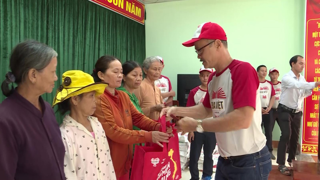 Các tình nguyện viên của Bia Việt đã có chuyến trao quà cứu trợ dành cho người dân xã Hành Tín Đông tại trụ sở UBND xã. Những phần quà gồm nhu yếu phẩm và tiền mặt góp phần giúp người dân bị thiệt hại sau cơn bão số 9, tái thiết cuộc sống, ổn định sản xuất. Đây là những người bị thiệt hại nặng nề về nhà cửa, hoa màu sau những đợt bão lũ liên tiếp vừa qua, đặc biệt là cơn bão số 9. Đoàn cũng đã đến thăm và tặng quà cho những gia đình bị thiệt hại nặng, chia sẻ những mất mát về kinh tế mà người dân vừa gặp phải.