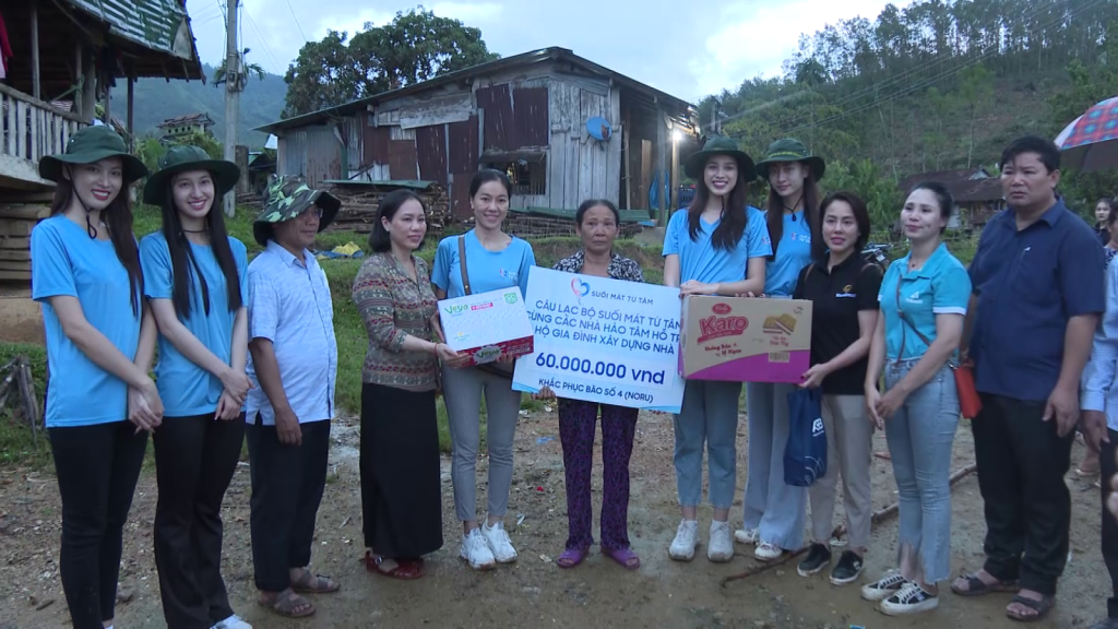 Ủy ban Mặt trận Tổ quốc Việt Nam tỉnh Quảng Ngãi phối hợp với câu lạc bộ Suối mát Từ Tâm và Hoa hậu Thùy Tiên, Lương Thùy Linh, Đỗ Thị Hà, Á hậu Ngọc Thảo, Phương Nhi đi đến thăm, tặng quà cho các gia đình có hoàn cảnh khó khăn bị thiệt hại do bão số 4 gây ra tại 2 huyện Ba Tơ, Sơn Hà.