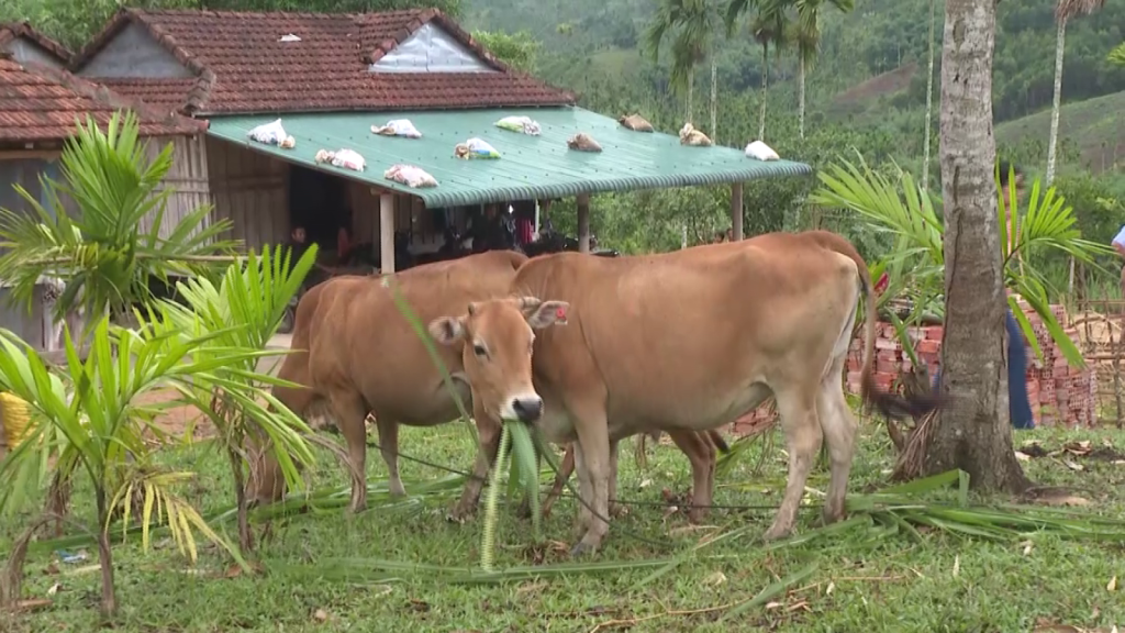 Còn ở xã Trà Tân, huyện Trà Bồng, mỗi hộ được nhận nuôi 1 con bò cái sinh sản, trị giá 15 triệu đồng. Bây giờ một số hộ đã phát triển thành đàn bò.
