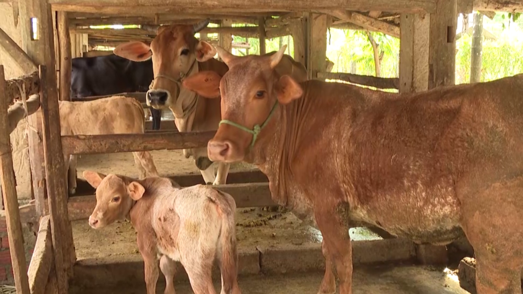 Anh Nguyễn Thanh Vy, Xã Trà Tân, huyện Trà Bồng, Quảng Ngãi nói: Từ con bò được cấp, cộng với 1 con bò của tui nuôi đối ứng, giờ tui đã có bầy bò 17 con.