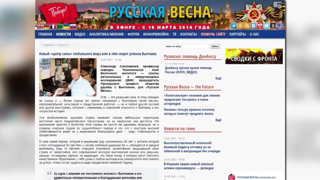 Trong bài viết có tên gọi “Trung tâm quyền lực mới của thế giới và bí quyết thành công của Việt Nam”, Giáo sư Sokolovsky đã nêu bật những thành tựu của Việt Nam trong mọi mặt đời sống xã hội, nhấn mạnh duy trì tăng trưởng kinh tế trong bối cảnh đại dịch là bằng chứng nổi bật về sự ổn định của Việt Nam.