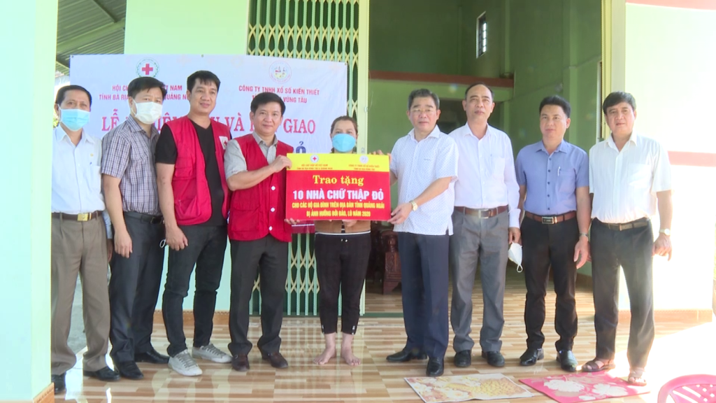 Đoàn cũng đã đến thăm hỏi và bàn giao Nhà Chữ thập đỏ cho gia đình chị Trần Thị Thu Hà ở thôn Tân An, xã Tịnh Đông. Đây là một trong 10 căn nhà do Hội Chữ thập đỏ tỉnh Bà Rịa - Vũng Tàu đã kết nối Công ty TNHH MTV Xổ số kiến thiết tỉnh Bà Rịa - Vũng Tàu tài trợ. Mỗi căn nhà được hỗ trợ 50 triệu đồng. Chương trình hỗ trợ cho người dân có hoàn cảnh khó khăn, học sinh, giáo viên trong trường học bị ảnh hưởng do bão lũ năm 2020. Việc hỗ trợ kịp thời nhà ở và máy tính kịp thời đã tạo điều kiện thuận lợi về chỗ ở cho người dân bị ảnh hưởng bão lũ và việc dạy online cho học sinh trong điều kiện dịch COVID-19./.