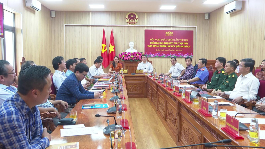 Sáng nay 07/3, tại điểm cầu Quảng Ngãi, Phó Bí thư Thường trực Tỉnh ủy, Trưởng đoàn đại biểu Quốc hội tỉnh Đặng Ngọc Huy đã chủ trì và dự hội nghị toàn quốc lần thứ 2 triển khai 9 luật, 10 nghị quyết của kỳ họp thứ 6 và kỳ họp bất thường lần thứ 5 của Quốc hội khóa XV. Tham dự hội nghị có Phó Trưởng đoàn đại biểu Quốc hội chuyên trách tỉnh Huỳnh Thị Ánh Sương, Phó Chủ tịch HĐND tỉnh Nguyễn Tấn Đức, lãnh đạo các sở, ban, ngành.