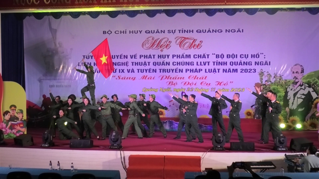 Hướng tới kỷ niệm 79 năm ngày thành lập Quân đội Nhân dân Việt Nam và 34 năm ngày Hội Quốc phòng toàn dân, Bộ Chỉ huy Quân sự tỉnh Quảng Ngãi tổ chức Hội thi tuyên truyền về phát huy phẩm chất “Bộ đội Cụ Hồ” liên hoan nghệ thuật quần chúng lực lượng vũ trang tỉnh lần thứ IX và tuyên truyền pháp luật năm 2023.