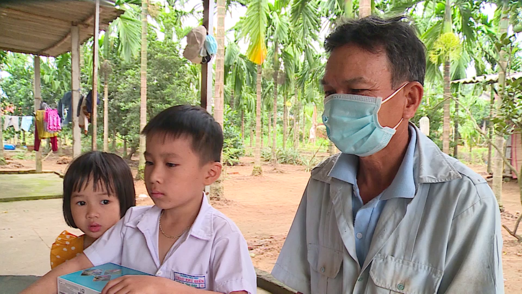 Em Trần Võ Công Khoa, ở xã Hành Trung, huyện Nghĩa Hành cũng có hoàn cảnh rất khó khăn. Mỗi ngày có giờ học trực tuyến phải đi sang nhà hàng xóm để xin học chung với các bạn khác. Những ngày mưa, gió không đi được em Khoa đành nghỉ học ở nhà.