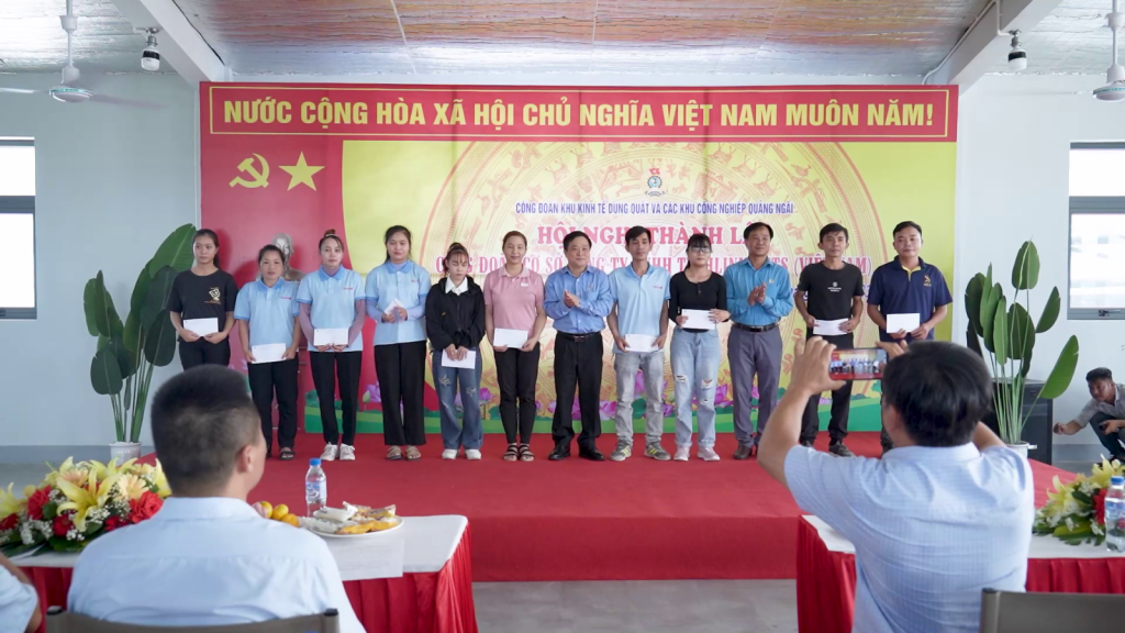 Dịp này, lãnh đạo Liên đoàn Lao động tỉnh, Công đoàn Khu kinh tế Dung Quất và các Khu công nghiệp Quảng Ngãi đã trao 10 suất quà, mỗi suất 500 ngàn đồng cho đoàn viên công đoàn có hoàn cảnh khó khăn./.