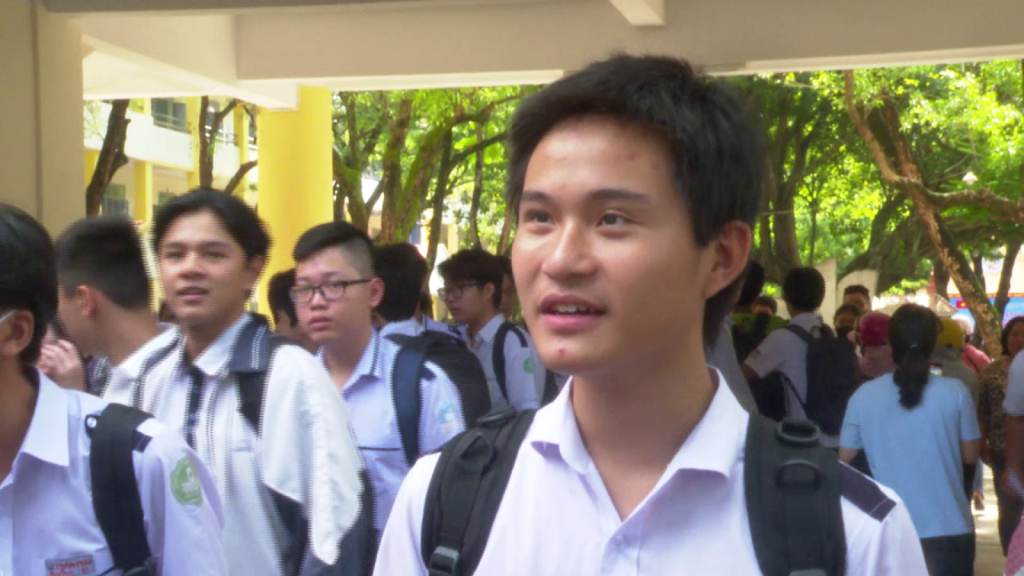 Thí sinh Huỳnh Nhật Vy nói: Sau khi thi 03 môn thì cháu thấy cũng đủ tự tin để đậu vào trường này, cháu cũng mong các bạn cùng thi đều đậu.