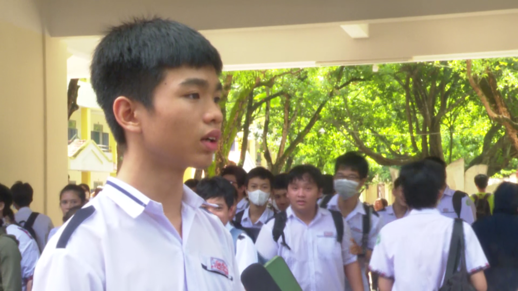 Thí sinh Nguyễn Thị Khánh My chia sẻ: Con thi xong thì con thấy 03 môn của con cũng ổn. Môn Toán thì hơi hơi một tí nhưng môn Văn của con và môn Anh cũng vừa sức với con.