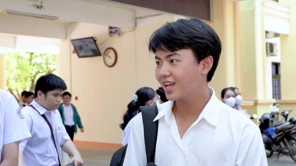 Thí sinh Lê Vĩnh Huy cho biết: Hôm nay con thấy thoải mái, mặc dù đề Toán khó hơn so với con nghĩ.