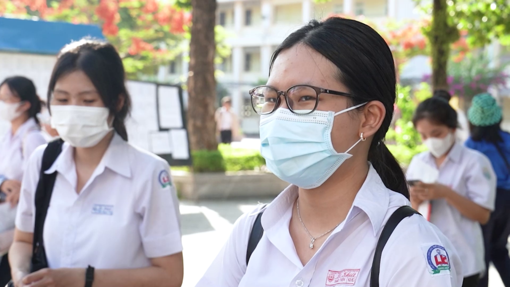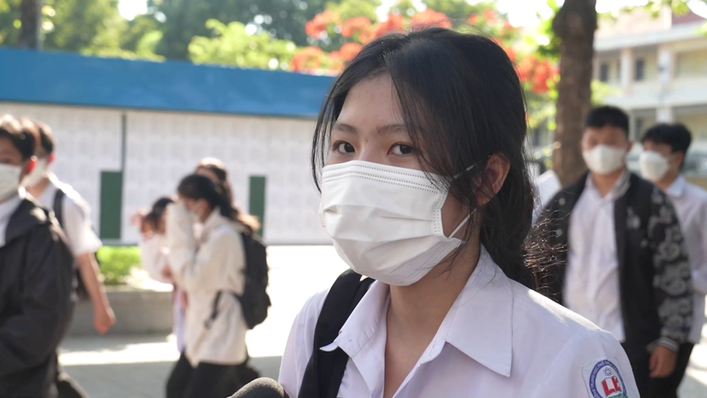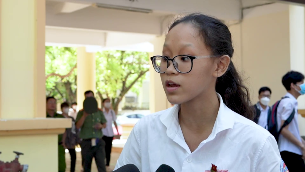 Thí sinh Lê Trọng Thủy Tiên nói: Con thấy khỏe hơn vì 02 môn này tương đối nặng. Sau khi thi xong em thấy rất thoải mái.