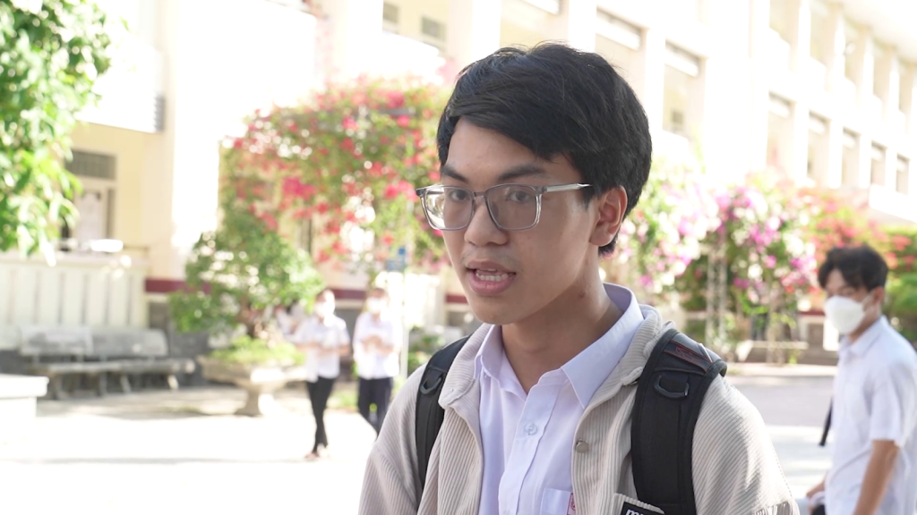 Thí sinh Trương Hoàng Việt cho biết: Đề thi năm nay nằm trong chương trình học của con. Con làm cỡ 90%.
