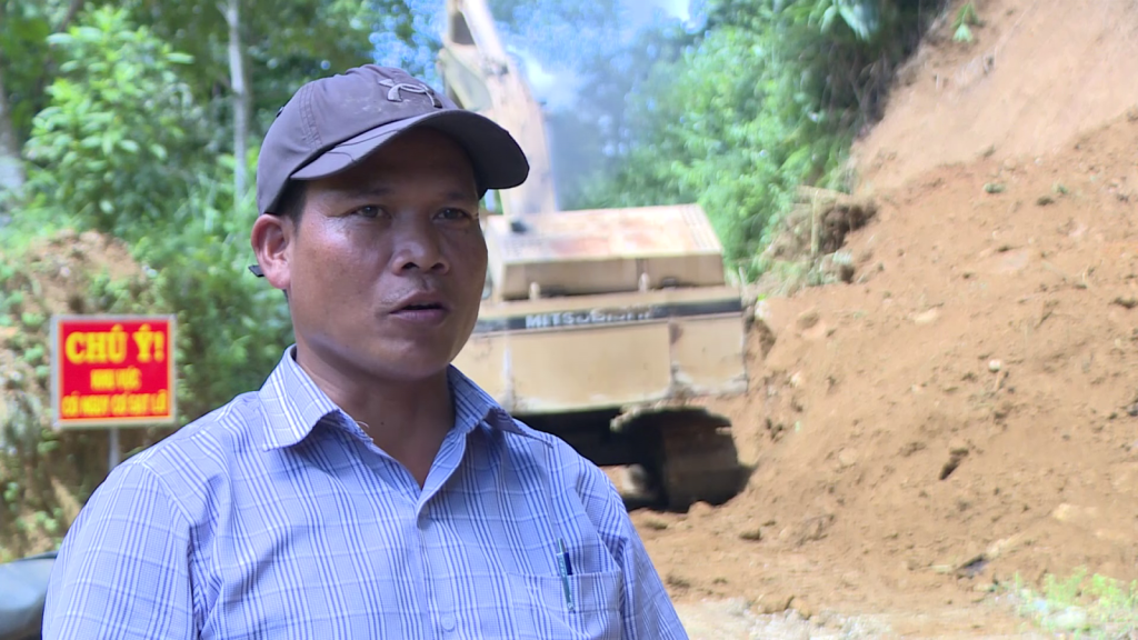 Anh Hồ Văn Thạo, Xã Sơn Trà, Trà Bồng, Quảng Ngãi nói: Địa phương rất quan tâm huy động máy móc, nhân lực khắc phục sạt lở, phục vụ cho bà con lưu thông qua lại, phục vụ cho việc vận chuyển lương thực và sản xuất của bà con.