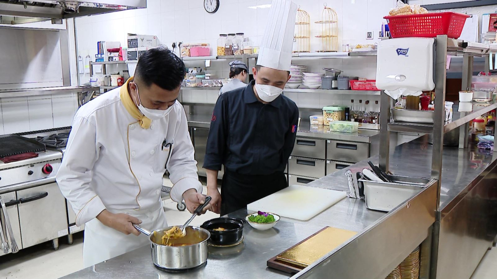 Ông Asmawai Bin Kassim - Bếp trưởng Halal, Khách sạn Dolce Hanoi Golden Lake, nói: Để phục vụ cho Seagame khách sạn chúng tôi sẽ chuẩn bị đồ ăn Halal cho những vận động viên, cổ động viên của những nước theo đạo Hồi. Ví dụ bạn có thể thấy ở đây chúng tôi đang chuẩn bị thịt gà Halal, thịt bò Halal, thì cừu Halal, và cả hải sản. Chúng tôi đang nấu cà ri gà, một món ăn mà bạn có thể thấy ở tất cả cả nước theo đạo Hồi, đây là một món Malaysia có nguồn gốc từ Ấn Độ, người đến từ Singapore, Brunei, Indonesia cũng có thể ăn được.