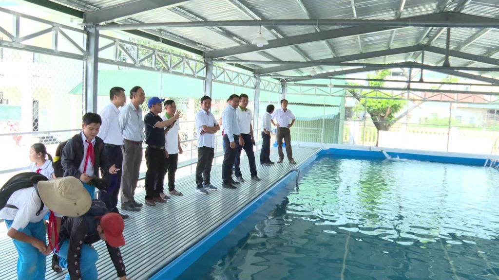Khánh thành bể bơi trường tiểu học Tịnh Hà. Ảnh: Trường Thịnh