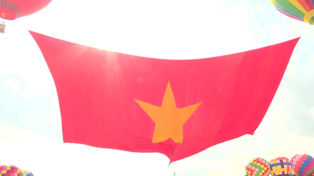 Từ sáng sớm, rất đông người dân đã đổ về khu vực bờ sông Sài Gòn, TP.Thủ Đức để đón chờ khoảnh khắc các kinh khí cầu kéo đại kỳ mừng lễ Quốc khánh 2/9. Đúng 8 giờ, lá quốc kỳ rộng1800m2 vuông đã được 2 quả khinh khí cầu lớn và 10 quả khinh khí cầu nhỏ xung quanh nâng lên cao tung bay trong gió, trong niềm hân hoan của người dân .