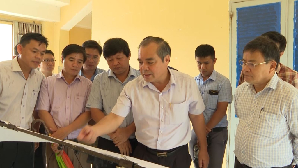 Phó Chủ tịch Thường trực UBND tỉnh Trần Hoàng Tuấn kiểm tra dự án nâng cấp sân vận động tỉnh.