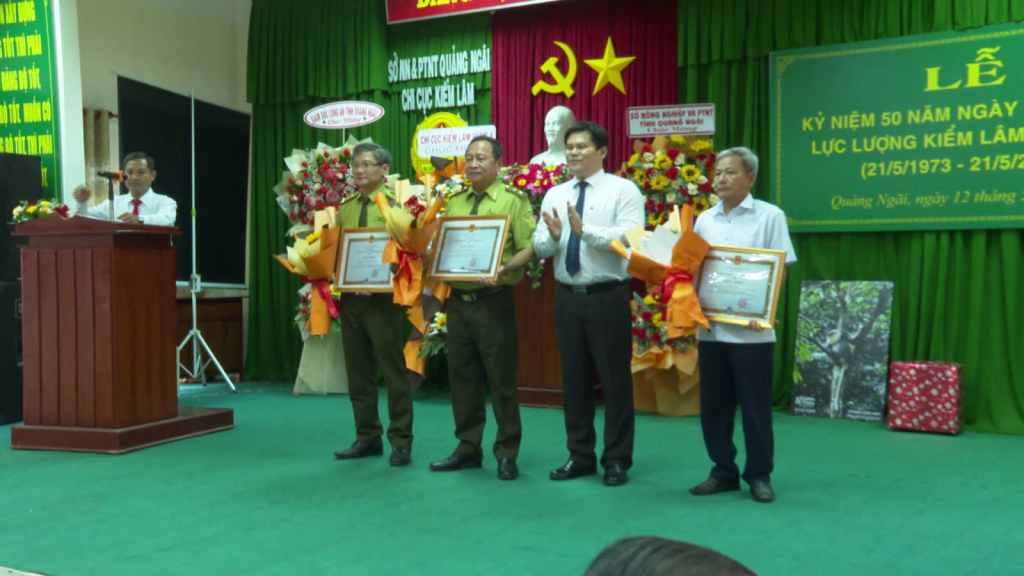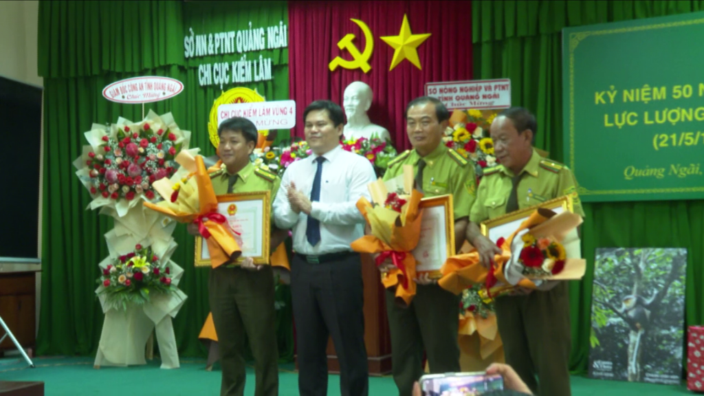Trao bằng khen của Chủ tịch UBND tỉnh Quảng Ngãi cho 3 tập thể và cá nhân thuộc lực lượng Kiểm lâm tỉnh Quảng Ngãi.