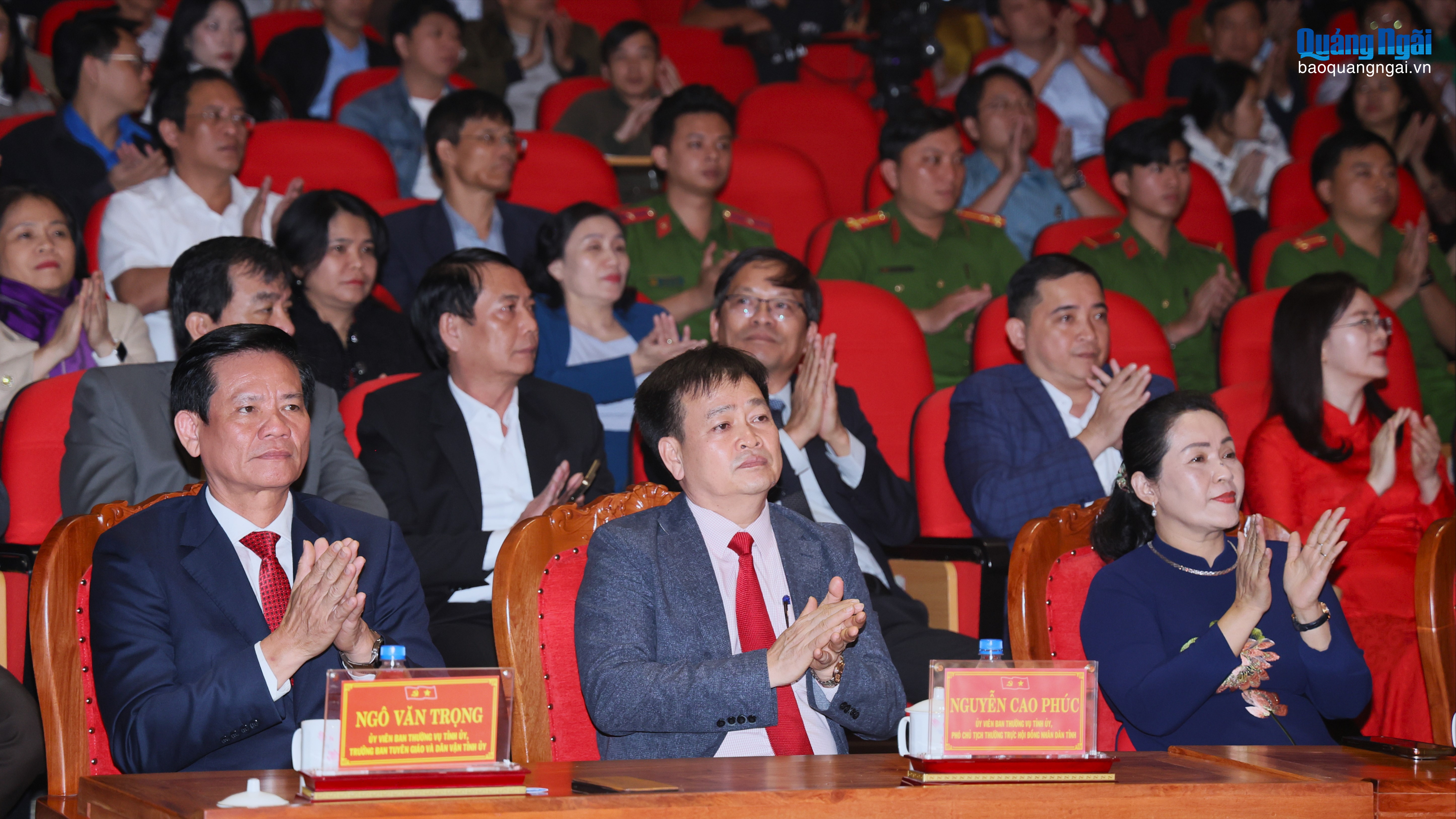 Chương trình nghệ thuật “Quảng Ngãi: Cội nguồn - ngòi bút - niềm tin và khát vọng” với những tiết mục ca ngợi Đảng quang vinh, Bác Hồ kính yêu và quê hương Quảng Ngãi được dàn dựng công phu đã tạo nên không khí trang trọng, sâu lắng; khơi dậy cảm hứng về truyền thống cách mạng và trách nhiệm của báo chí, tạo nền cảm xúc đẹp cho lễ trao giải.Gần 600 đại biểu là lãnh đạo tỉnh, đại diện các cơ quan, đơn vị, cùng các tác giả, nhóm tác giả đoạt giải và đông đảo cán bộ, đảng viên đã tham dự Lễ Tổng kết và trao Giải Búa liềm vàng tỉnh Quảng Ngãi lần thứ I. Buổi lễ là dịp đánh giá kết quả tổ chức giải, tôn vinh những tác phẩm báo chí xuất sắc, đồng thời khích lệ đội ngũ người làm báo chuyên và không chuyên tiếp tục sáng tạo, phục vụ hiệu quả công tác tuyên truyền về xây dựng Đảng, góp phần củng cố niềm tin của nhân dân đối với Đảng bộ tỉnh.Đồng chí Ngô Văn Trọng- Ủy viên Ban Thường vụ Tỉnh ủy, Trưởng Ban Tuyên giáo và Dân vận Tỉnh ủy, kiêm Phó Trưởng Ban thường trực Ban Tổ chức Giải, Chủ tịch Hội đồng chấm Giải phát biểu tổng kết và đánh giá kết quả tham gia Giải Búa liềm vàng tỉnh Quảng Ngãi lần thứ I.Giải Búa liềm vàng tỉnh Quảng Ngãi lần thứ I đã thu hút 302 tác phẩm thuộc 4 loại hình: báo in, báo điện tử, phát thanh và truyền hình. Hội đồng Chấm giải làm việc nghiêm túc, trách nhiệm, công tâm, khách quan, thống nhất đề xuất Ban Tổ chức quyết định trao 41 giải cho 40 tác phẩm, gồm: 3 giải A; 8 giải B; 12 giải C; 16 giải Khuyến khích; 1 giải chuyên đề Học tập và làm theo tư tưởng, đạo đức, phong cách Hồ Chí Minh và 1 giải chuyên đề Bảo vệ nền tảng tư tưởng của Đảng, đấu tranh, phản bác các quan điểm sai trái, thù địch.Ban Thường vụ Tỉnh ủy trao Bằng khen cho các cơ quan, đơn vị có đóng góp nổi bật trong công tác thông tin, tuyên truyền và tham mưu tổ chức thành công Giải Búa liềm vàng tỉnh Quảng Ngãi lần thứ I – năm 2025.Ủy viên Trung ương Đảng, Bí thư Tỉnh ủy Hồ Văn Niên và Phó Bí thư Tỉnh ủy, Chủ tịch HĐND tỉnh Nguyễn Đức Tuy trao giải cho các nhóm tác giả đoạt giải A.Ủy viên Trung ương Đảng, Phó Bí thư Tỉnh ủy, Chủ tịch UBND tỉnh Nguyễn Hoàng Giang và Phó Bí thư Tỉnh ủy Đinh Thị Hồng Minh trao giải cho các tác giả, nhóm tác giả đoạt giải B.Ủy viên Ban Thường vụ Tỉnh ủy, Trưởng Ban Tuyên giáo và Dân vận Tỉnh ủy Ngô Văn Trọng và Ủy viên Ban Thường vụ Tỉnh ủy, Phó Chủ tịch Thường trực UBND tỉnh Y Ngọc trao giải cho các tác giả, nhóm tác giả đoạt giải C.Ủy viên Ban Thường vụ Tỉnh ủy, Phó Chủ tịch Thường trực HĐND tỉnh Nguyễn Cao Phúc và Ủy viên Ban Thường vụ Tỉnh ủy, Trưởng Ban Nội chính Tỉnh ủy Trương Thị Linh trao giải cho các tác giả, nhóm tác giả đoạt giải Khuyến khích.Ủy viên Ban Thường vụ Tỉnh ủy, Trưởng Ban Tổ chức Tỉnh ủy Lữ Ngọc Bình và Ủy viên Ban Thường vụ Tỉnh ủy, Phó Chủ tịch Thường trực Ủy ban MTTQ Việt Nam tỉnh Y Thị Bích Thọ trao giải cho các tác giả đoạt giải Chuyên đề.Phó Bí thư Tỉnh ủy, Chủ tịch HĐND tỉnh, Trưởng Ban Tổ chức Giải Nguyễn Đức Tuy và Ủy viên Ban Thường vụ Tỉnh ủy, Trưởng Ban Tuyên giáo và Dân vận Tỉnh ủy kiêm Phó Trưởng Ban thường trực Ban Tổ chức Giải, Chủ tịch Hội đồng chấm giải Ngô Văn Trọng tặng hoa và biểu trưng cảm ơn các doanh nghiệp đã đồng hành cùng lễ trao giải.Phó Bí thư Tỉnh ủy, Chủ tịch HĐND tỉnh, Trưởng Ban Tổ chức giải Nguyễn Đức Tuy phát biểu chỉ đạo và phát động Giải Búa liềm vàng tỉnh Quảng Ngãi lần thứ II - 2026.