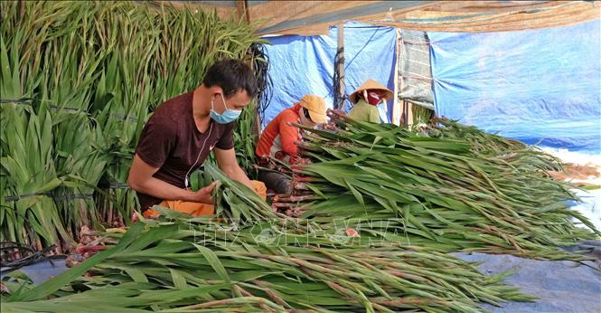 Nhân công phân loại và đóng gói hoa tại một vựa hoa ở xã Hiệp An, huyện Đức Trọng, tỉnh Lâm Đồng để chuẩn bị chở đi tiêu thụ tại các tỉnh, thành trong nước (ảnh tư liệu).