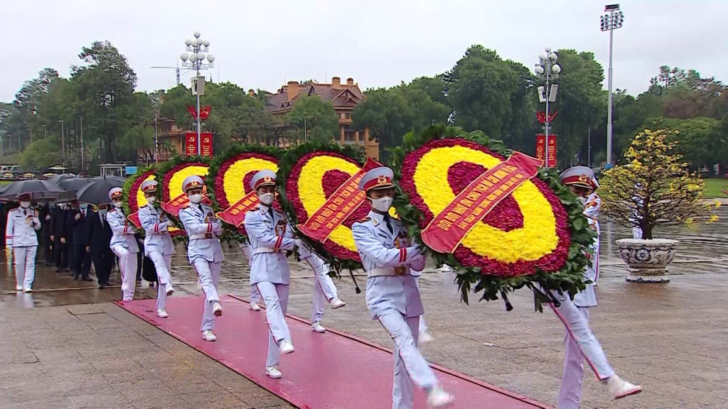 Các đồng chí lãnh đạo Đảng, Nhà nước thành kính tưởng nhớ, bày tỏ lòng biết ơn vô hạn đối với công lao to lớn của Chủ tịch Hồ Chí Minh, vị lãnh tụ thiên tài của Đảng và nhân dân ta, người thầy vĩ đại của cách mạng Việt Nam. Người đã cống hiến cả cuộc đời cho dân, cho nước, dẫn dắt Đảng, nhân dân Việt Nam làm nên những thắng lợi vẻ vang, làm rạng rỡ dân tộc, non sông đất nước. Toàn Đảng, toàn dân, toàn quân ta quyết kiên trì đi theo con đường Chủ tịch Hồ Chí Minh đã lựa chọn, chung sức, đồng lòng, nỗ lực phấn đấu xây dựng nước Việt Nam hòa bình, độc lập, thống nhất, dân chủ, giàu mạnh, vững bước đi lên chủ nghĩa xã hội.