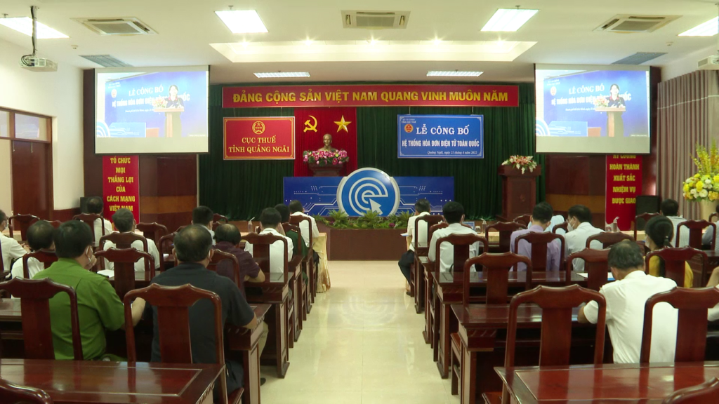 Sáng nay 21/4, Thủ tướng Phạm Minh Chính đã dự Lễ công bố Hệ thống hóa đơn điện tử toàn quốc do Tổng Cục thuế Việt Nam tổ chức. Lễ công bố được tổ chức tại trực tuyến tại 476 đểm cầu ở 63 tỉnh, thành phố. Chủ tịch UBND tỉnh Đặng Văn Minh đã dự lễ công bố tại điểm cầu Quảng Ngãi.
