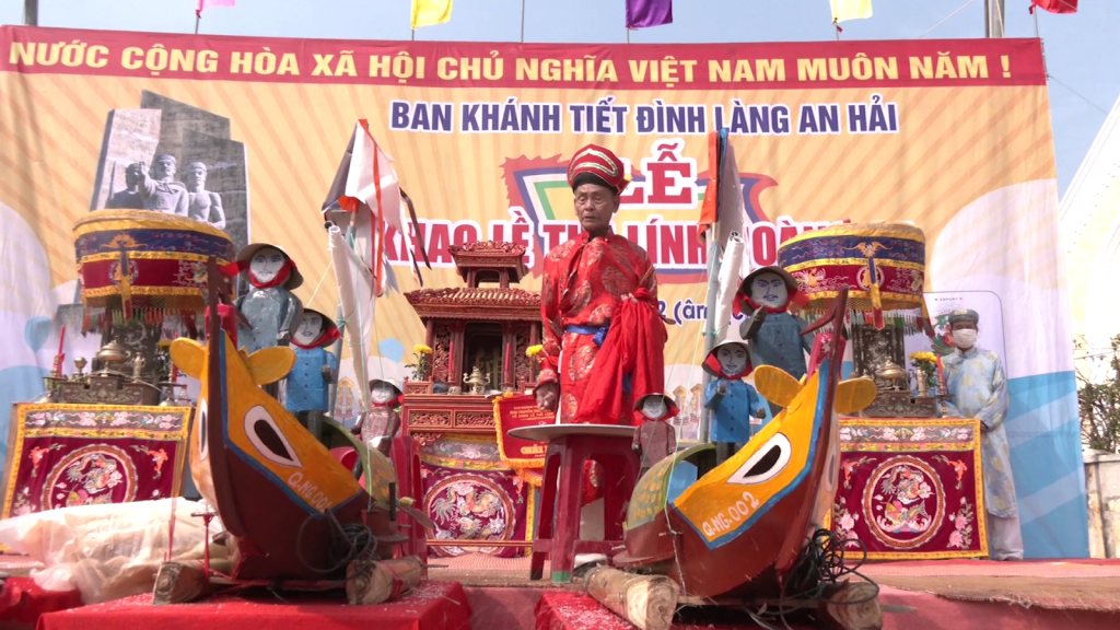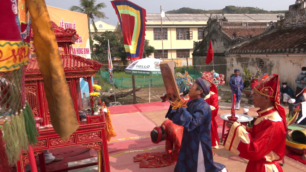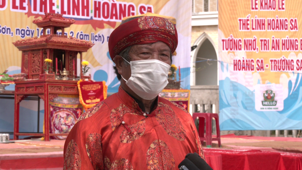 Trong không gian linh thiêng. Tiếng trống, tiếng chuông, tiếng phách gỗ uy nghiêm. Từng lời văn tế hùng binh Hoàng Sa - Trường Sa vang lên giữa bốn bề sóng biển. "Hoàng Sa trời nước mênh mông; Người đi thì có mà không thấy về; Hoàng Sa mây nước bốn bề; Tháng hai khao lề thế lính Hoàng Sa".