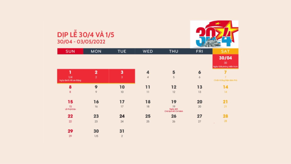 Lịch nghỉ lễ Giỗ Tổ Hùng Vương, dịp lễ 30/4 - 1/5