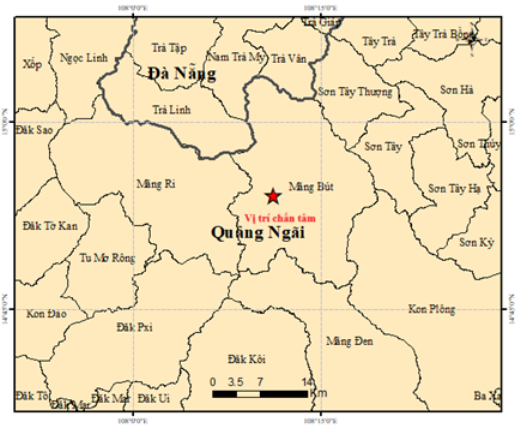 Theo Trung tâm Báo tin Động đất và Cảnh báo sóng thần, lúc 10 giờ 37 phút ngày 29/9, một trận động đất có độ lớn 2,6 xảy ra tại xã Măng Bút, Quảng Ngãi, ở độ sâu chấn tiêu khoảng 8,1 km.