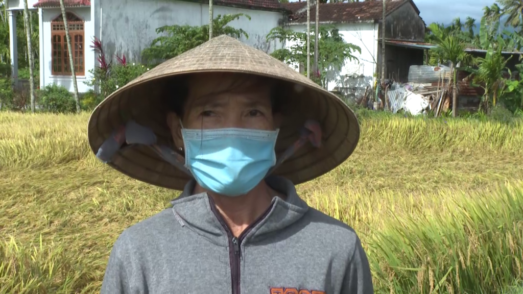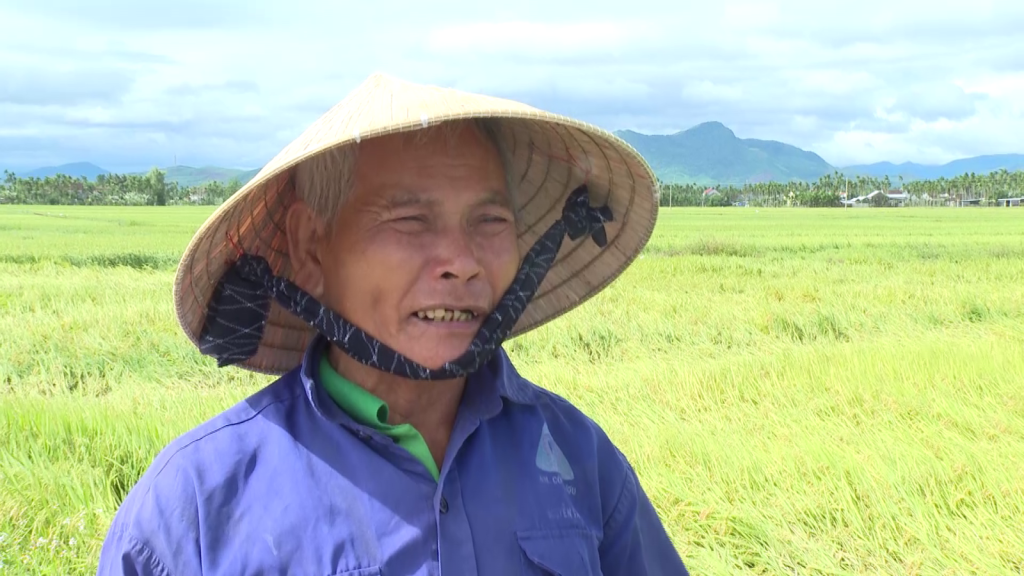 Ông Nguyễn Văn Nà, Thị trấn Chợ Chùa, huyện Nghĩa Hành, Quảng Ngãi nói: Lúa ngã đổ bị hư làm giảm năng suất và công thu hoạch sẽ tăng lên.