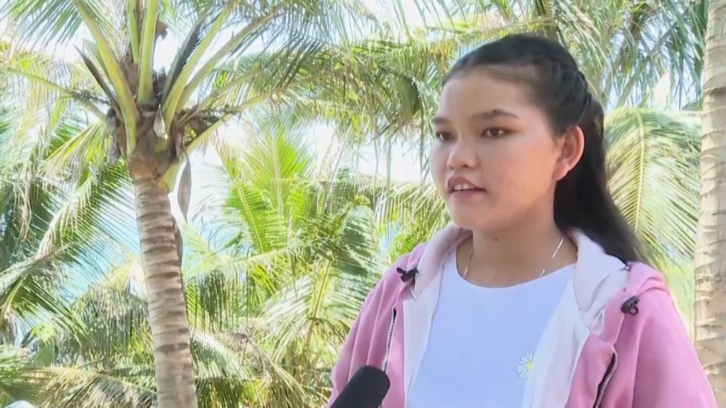 DuangChampa Dovee , Lưu học sinh Lào tại tỉnh Quảng Ngãi bộc bạch: Em tới đây lần đầu tiên. Em thấy chỗ này rất đẹp, rất thích, có nhiều hoa, có dừa, có biển quá rộng.