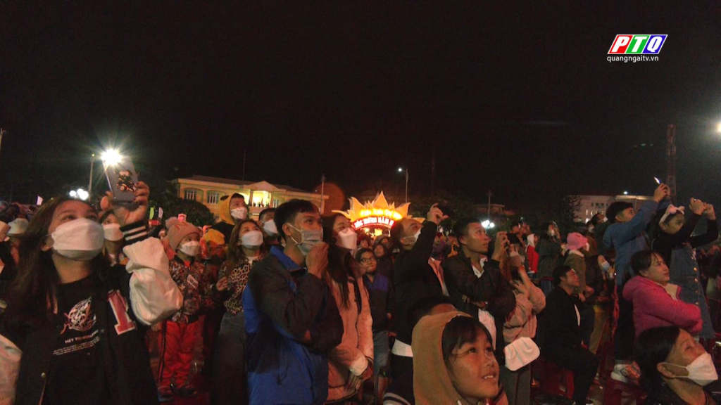 Càng gần đến thời khắc giao thừa, người dân đảo tiền tiêu Lý Sơn tập trung về Quảng trường trung tâm huyện càng đông để cùng nhau thưởng thức các tiết mục văn nghệ và màn pháo hoa trước thời khắc thiêng liêng đất trời chuyển giao giữa năm cũ và năm mới.