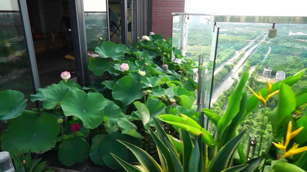 Giữa lòng thành phố, giữa những tòa nhà cao vút, những bông sen nở rộ tỏa hương dịu nhẹ trên lưng chừng trời … .Và đây chính là thành quả của vợ chồng anh Nguyễn Thành Tùng. Chỉ vỏn vẹn khoảng 5m2 thế nhưng, hồ sen này đã mang được nét thơ đến “rừng” cao ốc…