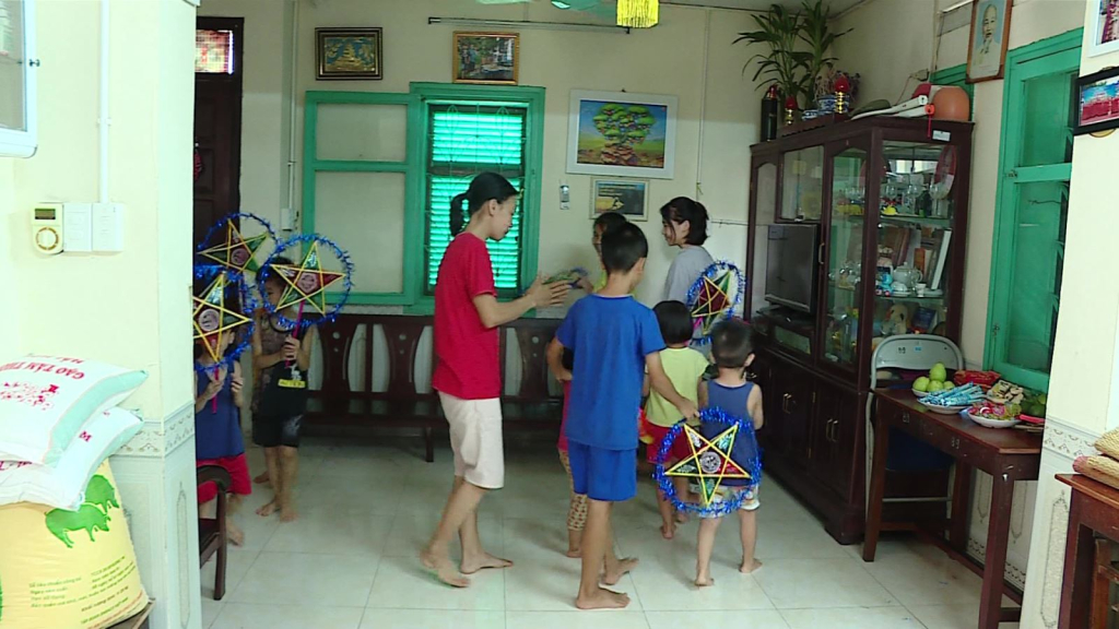 Khác với mọi năm được tung tăng vui đùa tập trung, năm nay 16 gia đình trong làng SOS đón trung thu riêng lẻ như thế này.Mỗi gia đình trên 10 thành viên, trước ngày trung thu, các anh chị lớn hướng dẫn em lắp đèn trung thu và cùng nhau hát vang những ca khúc rộn ràng chào đón mùa trung thu tới.