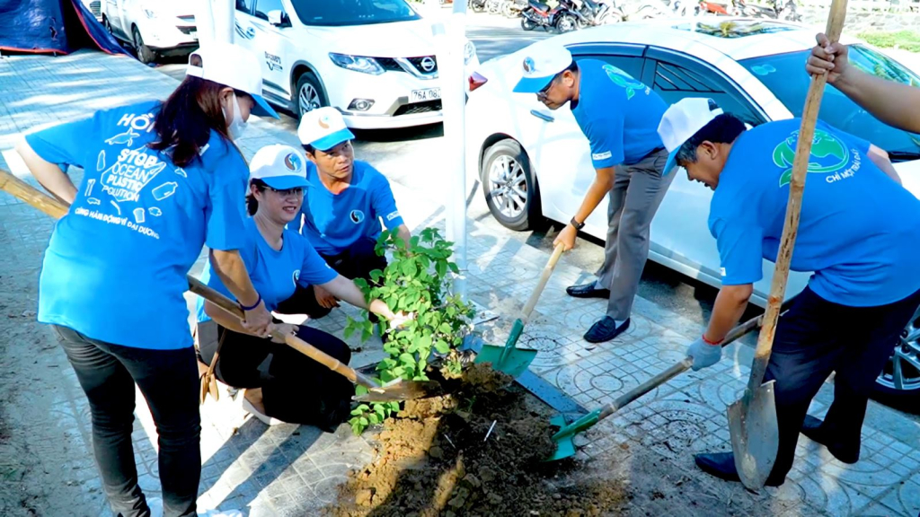 Ngay sau lễ mít tinh, đông đảo cán bộ, đoàn viên, thanh niên đã ra quân trồng cây xanh và dọn vệ sinh môi trường khu vực biển Mỹ Khê.