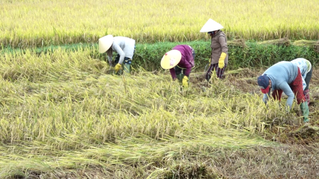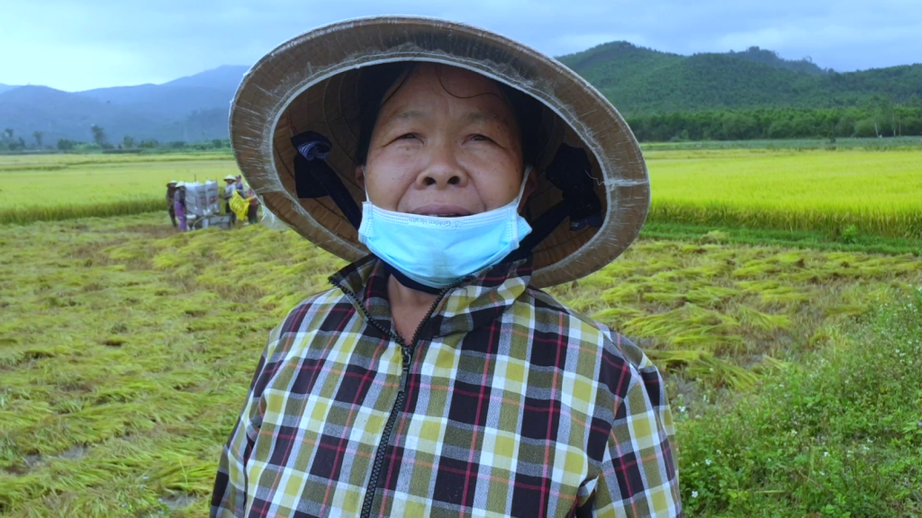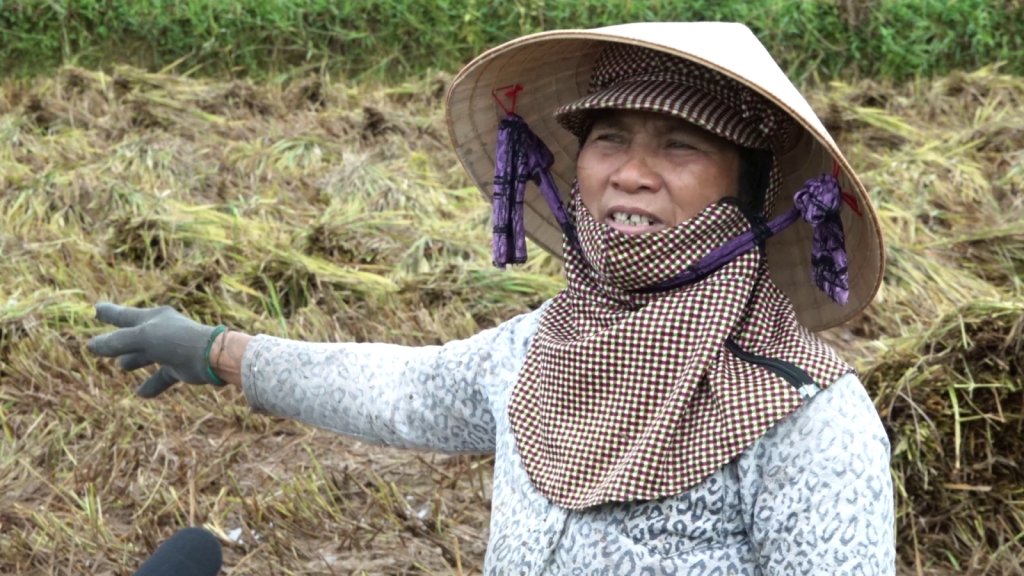 Bà Đỗ Thị Dưỡng, Xã Đức Tân, Mộ Đức, Quảng Ngãi nói: Lớn tuổi nhưng bây giờ lúa nó ngã thì mình cũng ra đồng gặt lúa dùm cho con cháu, bà con để lúa nó ngã, nó hư hết không có cho con cháu. Thì bây giờ kệ nó chứ nó nhờ mình mình cũng ra ruộng mình cũng làm dùm cho nó, đi gặt, đi cắt cho nó chứ để mưa gió nó lên mộng.