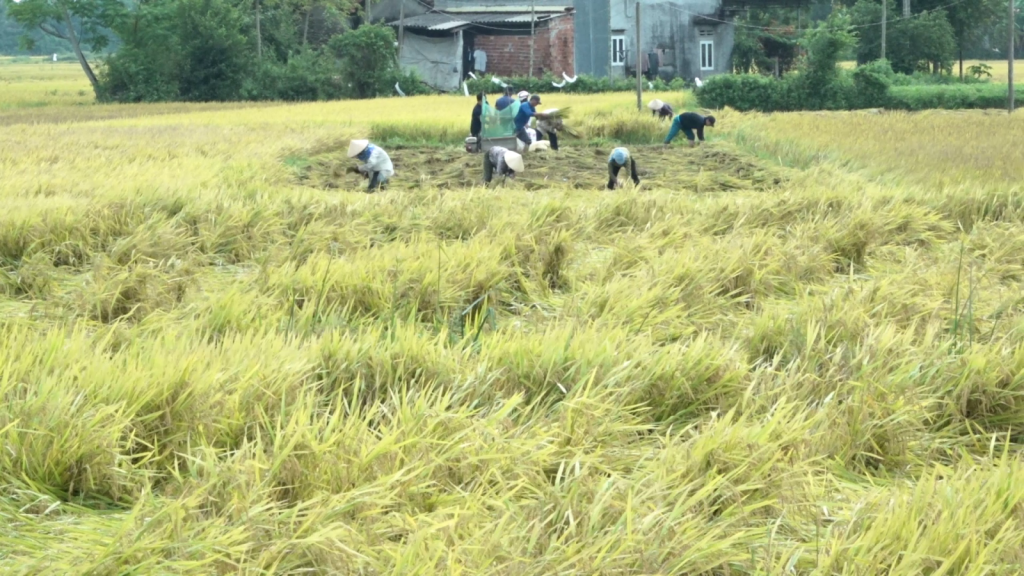 Những ngày qua, bà Lê Thị Bảy, ở xã Đức Tân phải chạy đôn chạy đáo để nhờ người gặt 2 sào ruộng lúa bị ngã đổ. Biết được khó khăn, nhiều bà con trong thôn đã tranh thủ huy động nhau giúp gia đình.