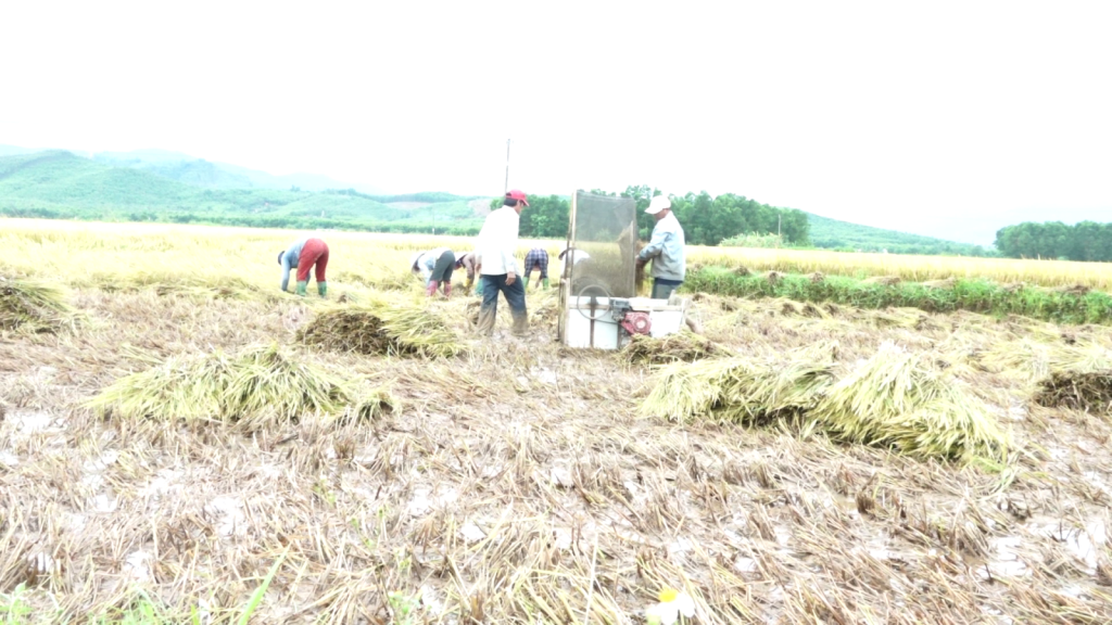 Mộ Đức huy động giúp nhau gặt lúa đổ ngã do mưa lớn